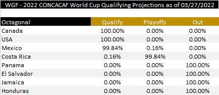 3月28日讯 中北美区世预赛倒数第二轮战罢,加拿大获得直通世界杯资格。美国、墨西哥、哥斯达黎加在本轮全部取胜。目前美国、墨西哥同积25分,美国凭借净胜球优势位居第二。哥斯达黎加积22分位列第四。